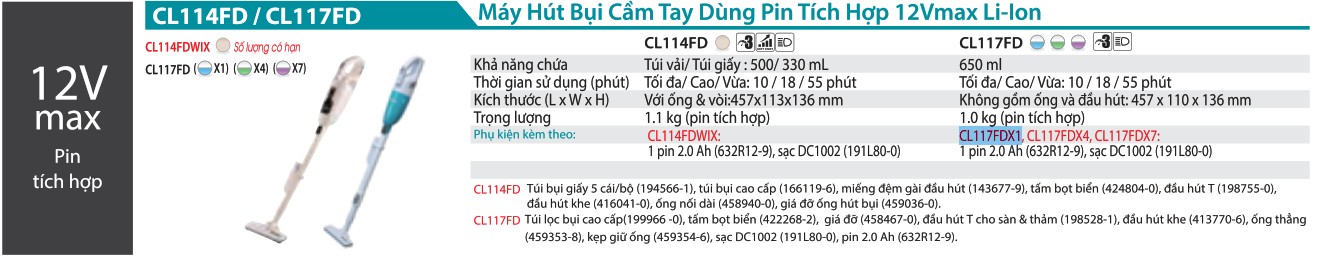 Makita CL117FDX1 là một trong những mẫu máy hút bụi pin 12V MAX được ưa chuộng của thương hiệu Makita. Với thiết kế nhỏ gọn, tiện dụng và khả năng hoạt động linh hoạt, sản phẩm này rất phù hợp cho việc dọn dẹp nhà cửa, văn phòng hoặc các không gian nhỏ.