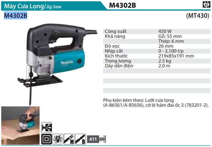 Máy cưa lọng Makita M4302B Makita M4302B này đã chiếm được lòng tin của nhiều người nhờ vào độ bền.