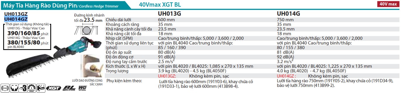 Makita UH014GZ là sự lựa chọn lý tưởng cho những ai tìm kiếm một công cụ tỉa hàng rào mạnh mẽ và dễ sử dụng, giúp bạn hoàn thành công việc một cách nhanh chóng và hiệu quả.