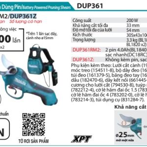 Makita DUP361RM2 MÁY CẮT CÀNH DÙNG PIN(18VX2) (kèm 02 pin 4.0Ah + sạc nhanh)