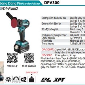 Makita DPV300RTJ MÁY ĐÁNH BÓNG DÙNG PIN(18V) (kèm 02 pin 5.0 + sạc nhanh)